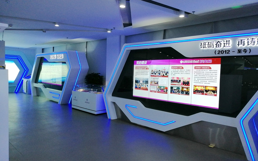 校史馆的设计通常考虑到校史馆的整体空间的局限性,内容展示的传统性和现代科技性。设计团队不仅只是通俗的死板式陈列,需要将学校的发展史通过互动体验传播式展现出来,陈列展示将校史陈列变成一个讲故事的展示,它不是简单的展示,它是有感情的展示;云顶集团视讯专注于液晶拼接显示系统解决方案的厂商,在与客户多次沟通交流,了解清楚客户的实际需求,根据展馆的使用环境,搭建了一套 55英寸 一行六列、两套55英寸一行四列液晶拼接屏,采用了多屏高清处理器以及平板统一控制系统,完美的实现了预期效果,取得了客户以及业主单位的一致认可。