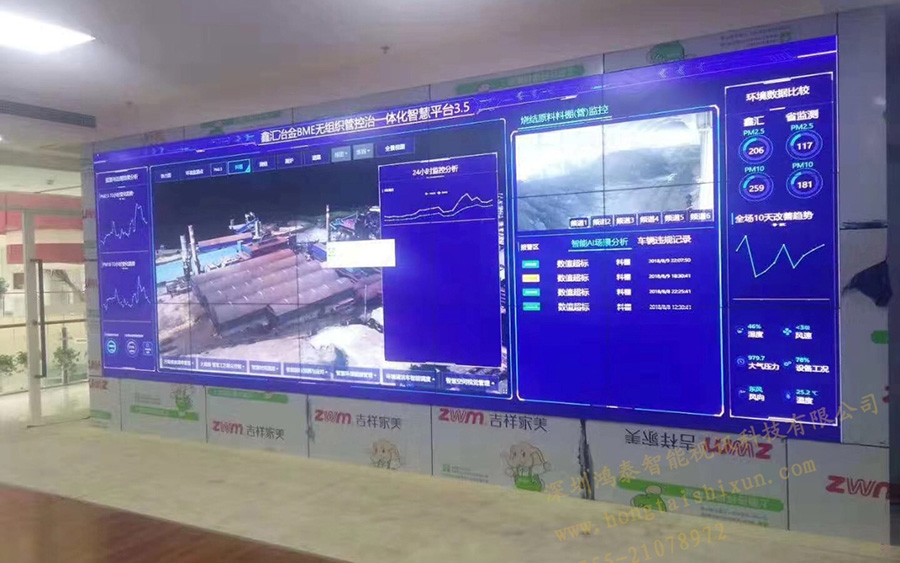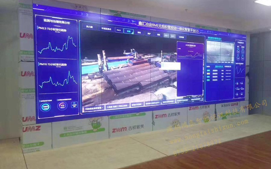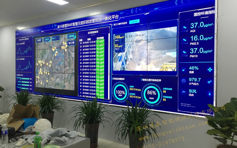 我国是当之无愧的钢铁大国,新世纪以来的十几年间,我国钢铁工业迅猛发展,粗钢产量快速增加,常年位居世界第一,重工业的发展同样会给环境治理带来很大困扰,各大钢铁厂为响应国家环保政策积极组建《环境检测治理管控中心平台》,在充分了解清楚用户单位的真实需求之后,深圳云顶集团智能视讯科技有限公司为各大钢铁厂管控中心成功搭建一套55寸1.8mm 3x5液晶拼接屏系统,高清实时显示管控平台日常数据。